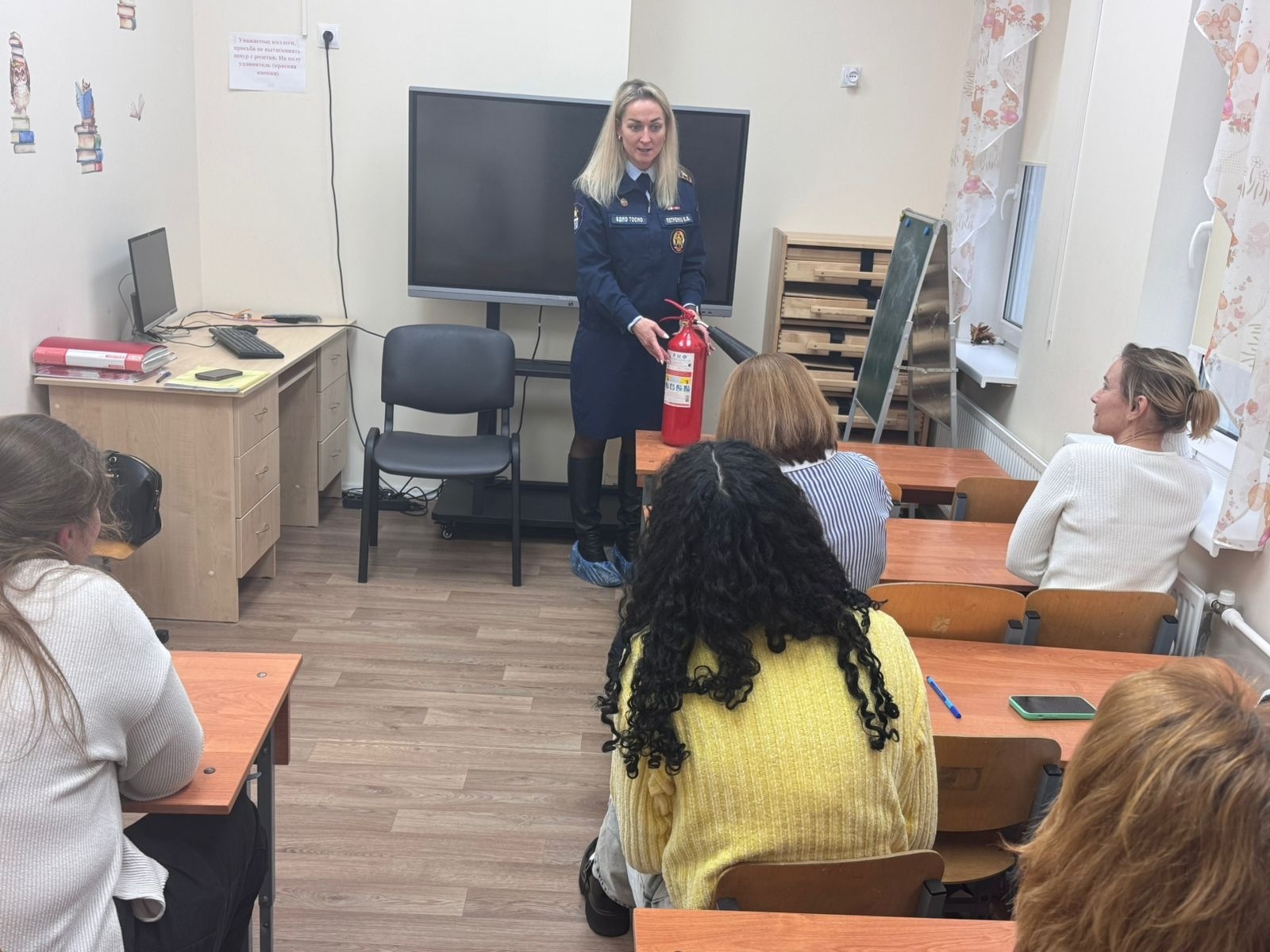 А так же Екатерина Валерьевна провела беседу с сотрудниками детского сада о мерах пожарной безопасности на работе и в быту.