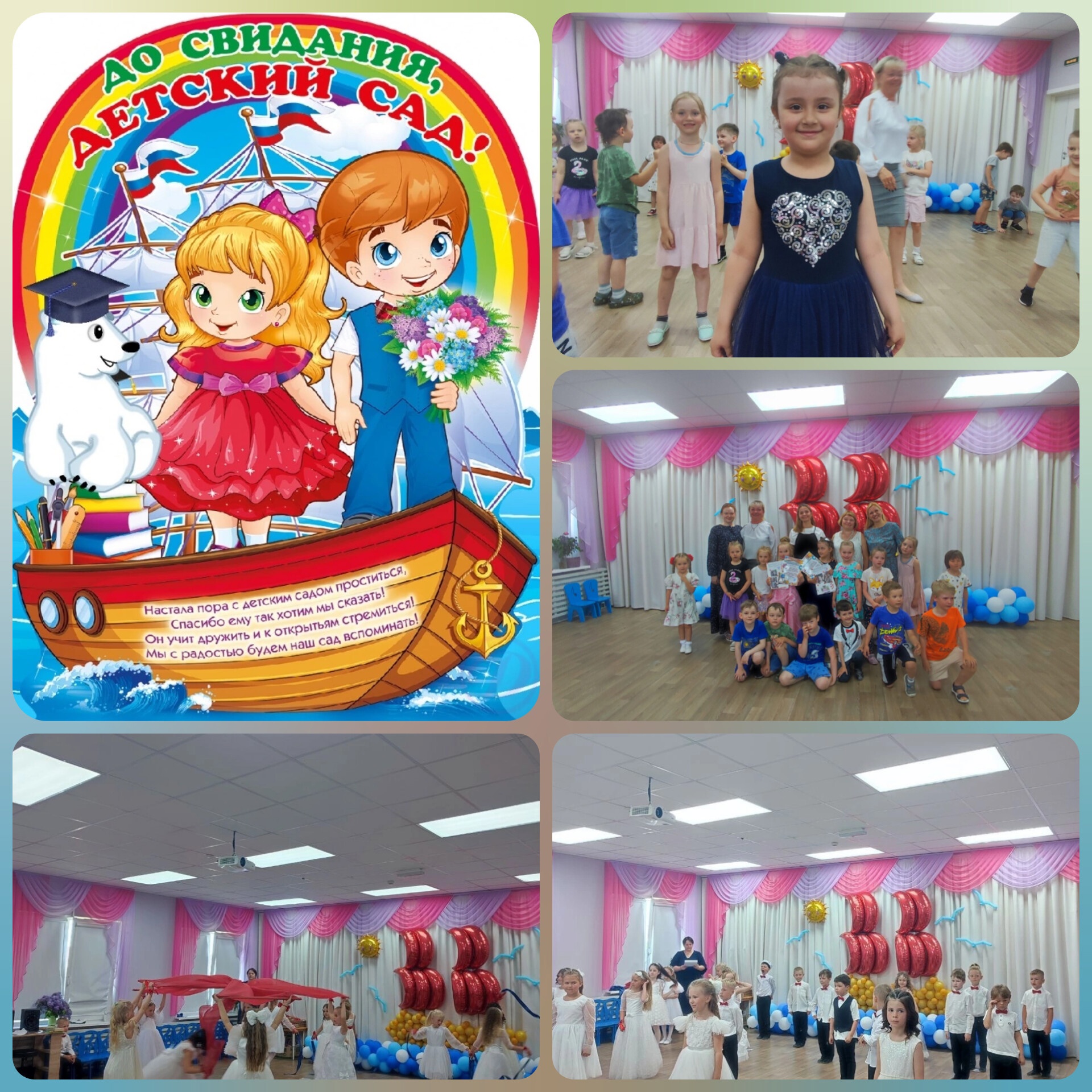 30.05.2024 Пришло время подвести итоги уходящего учебного года. В группе "Радуга" прошел выпускной. 25 человек превратились из дошколят в первоклассников. В  старшей группе "Счастливчики" две очаровательные принцессы отлично подготовились к школе и покидают наш детский сад. Желаем всем нашим выпускникам двигаться вперед к новым знаниям, покорять новые вершины, новых друзей, отличных учителей и удачи в учебе!