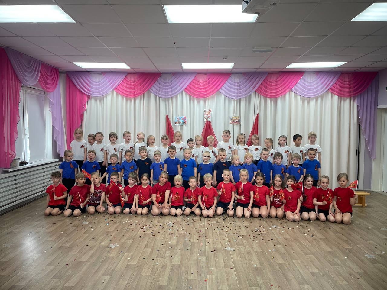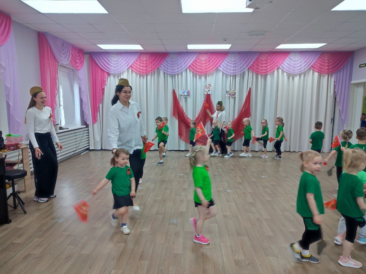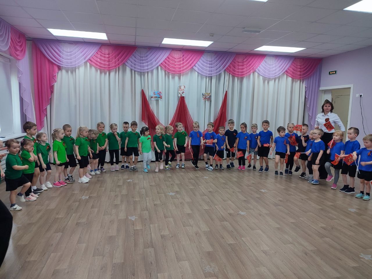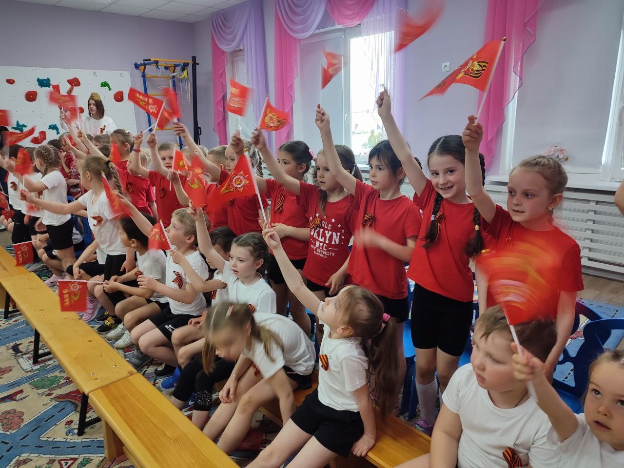 08/05/2024 Сегодня в детском саду прошел детсадовский парад победы. Ребята всех групп маршировали, пели песни, рассказывали стихи, смотрели волшебный экран, слушали и подпевали воспитателям, прошла минута молчания и был праздничный салют!